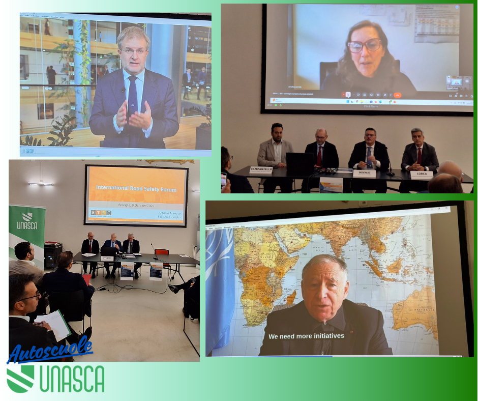 Giovedì 9 ottobre, nella splendida cornice della Sala Tassinari di Palazzo d’Accursio a Bologna, si è svolto l’International Road Safety Forum, evento internazionale dedicato alla sicurezza stradale organizzato da UNASCA in collaborazione con EFA (Federazione Europea Autoscuole) e AIPSS (Associazione Italiana Professionisti della Sicurezza Stradale).Un appuntamento di alto profilo, patrocinato dal Comune di Bologna, con l’obiettivo di condividere buone pratiche e progetti internazionali per ridurre il numero delle vittime della strada, in linea con la Vision Zero 2050 e l’impegno europeo di dimezzare gli incidenti entro il 2030.La giornata si è aperta con i saluti istituzionali del Segretario nazionale autoscuole UNASCA Alfredo Boenzi, del Presidente di EFA Enrique Lorca, e con il videomessaggio di Jean Todt, Inviato speciale delle Nazioni Unite per la Sicurezza Stradale.Nel corso dei lavori, moderati da Manuel Picardi, numerosi esperti e rappresentanti europei hanno affrontato i temi più urgenti della sicurezza stradale: dalle infrastrutture agli interventi post-incidente, dalle campagne di formazione alla pianificazione urbana. In collegamento da Bruxelles è intervenuto l’Onorevole Carlo Fidanza, membro della Commissione TRAN del Parlamento Europeo, mentre Antonio Avenoso, Direttore esecutivo dell’European Transport Safety Council, ha tracciato un bilancio sui progressi e le sfide ancora aperte per raggiungere gli obiettivi europei.