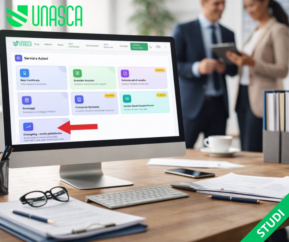 Nuova pagina Changelog in UNASCA Studi per visualizzare stato di avanzamento e novità della piattaforma. La Rete Certificata cresce e usa sempre più servizi.